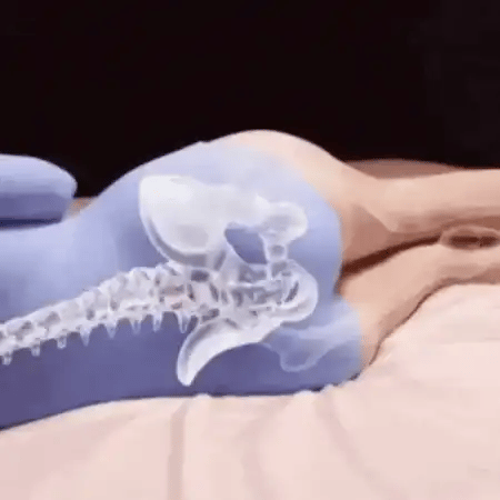 NĂ€r du sover pĂ„ sidan drar gravitationen ner ditt översta ben mot madrassen. BĂ€ckenet vrids. Ryggraden vrĂ€nger sig. Ischiasnerven klĂ€ms ihop â i 6â8 timmar varje natt.